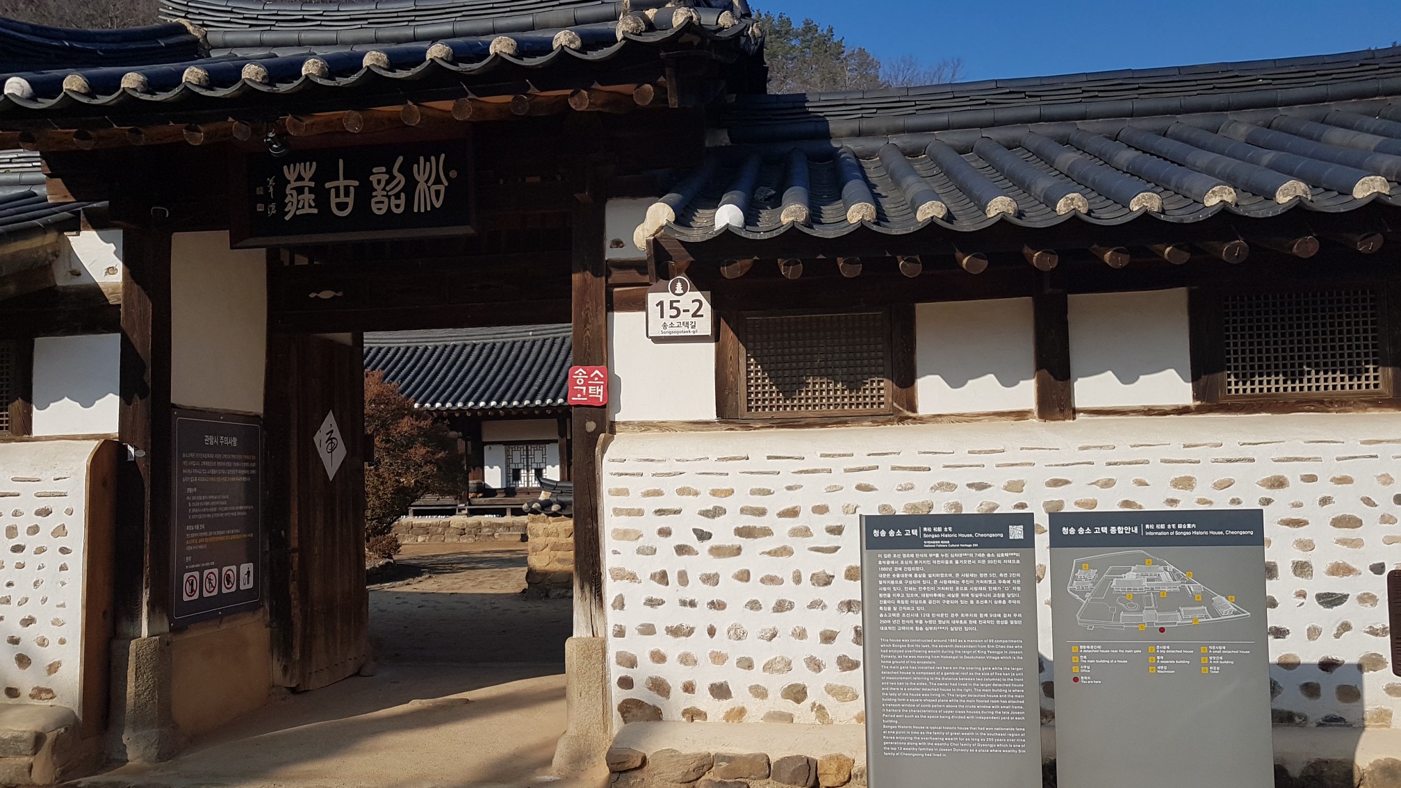 송소고택 정문이다.안내문을 읽어보면 경주최씨가 12대, 청송심씨가 9대 만석의 부를 누렸다고 한다.